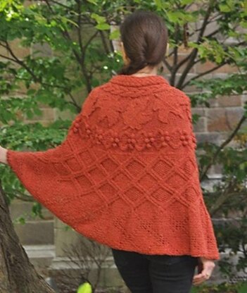 The top half of this beautiful maple leaf cape is knitted side to side using wrap-and-turn short rows to create a circular shape. The bottom half is knitted by picking up stitches from the top section and worked top down. No seams to assemble the cape. Each maple leaf is worked separately in continuous rows and sewn on after the cape is completed. Charts and full text (in case you don't like charts) are given in the pattern. The cape pictured was made with recycled fiber yarn.
