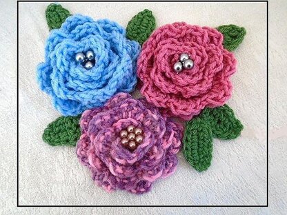 Crochet FLOWER PATTERN, Washington Rose, Flower and leaves, appliques and trims, Sewing and Knitting embellishments, # CF08- CROCHET FLOWERS BY EMI.