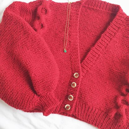 This cardi is knitted up holding 2 strands of DK together, the perfect opportunity for mixing and matching colours or use a single strand of chunky yarn.