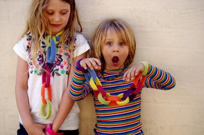 Instructions included for knitting the chains in either stocking stitch or garter stitch in two sizes. Each chain takes between 8-14 m of DK yarn depending on stitch.