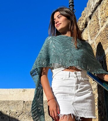 Medidas del chal terminado y bloqueado aproximadamente: 2,48 m de largo x 0,43 m de ancho Esta formado por 13 secciones, dé un motivo, una intersección de punto bobo y otra de lace porque así resulta mas fácil ampliar o acortar el chal, según la lana que dispongas. Esta pensado para utilizar un ovillo completo de lana feliz y punto YAKME mi color kypras light .480m/120 gr, completo con la 13 secciones En mi caso la sección 13 la omití , pero esta incluida en el patrón , por si quieres un chal mas grande. Puedes utilizar cualquier hilado, teniendo en cuenta en subir de aguja si el hilado es de menos metros, que la muestra tejida. Para bloquear el chal ,la forma es la de media luna.