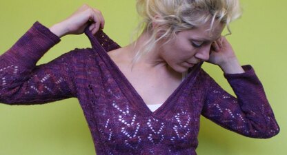 Worked flat, in pieces. Stitches are picked up around neck and back area for hood. Neckline is picked up around hood and v-neck for hood’s edging. Set-in sleeves.