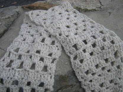 This scarf was named because I designed this as a quick & easy charity scarf, and because the shell sections are similar to the shells in granny squares! Very easy for advanced beginners to make. If desired, use scraps & create a striped version!