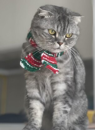 The great thing about this pattern is you measure the circumference of your furry friend’s neck and knit the pattern to size. The width of this scarf is best suited for pet’s with a neck circumference of 18cm-60cm / 7’-24’.