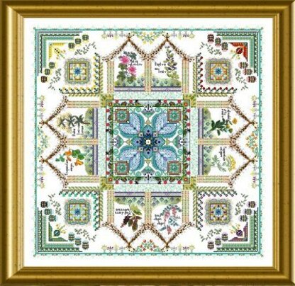 Pattern/Chart only. Suggested materials (not included): Model to be stitched on fabric of your choice with DMC floss, Caron Waterlilies, Caron Wildflowers, Dinky Dyes Silk, Dinky Dyes Silk Perle 600d (P107, P142, P174), Edmar Rayon or other shiny rayon floss (IR215), Gloriana Florimell (Lavender Ice), Gloriana Luminescence silk (Forest), Gloriana Silk, Gloriana Petite Perle Princess (PPP049), Rainbow Gallery Whisper, Rainbow Gallery Petite Treasure Braid, Rainbow Gallery Silk Lame Braid (SP60, SP69), Delica Beads & Swarovski Crystals. Stitch Count: 319 x 319
