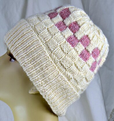 The checkerboard hat is all about contrasts. The woven look is made by the juxtaposing bumpy garter stitch against smooth stockinette- creating a highly textured effect without the need to cable. If knit in soft tones the hat looks subtle and classic, while if it’s done in bright saturated colours it will look edgy and modern.