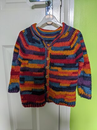 Simple unisex crochet raglan cardigan inspired by a cheeky monkey.