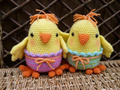 These Chirpy Chicks have only just hatched and are already eager to go play in all the spring sunshine that's surely coming our way! One pattern creates both a boy or a girl chick simply by changing the colorways of their cute little egg shell pants.