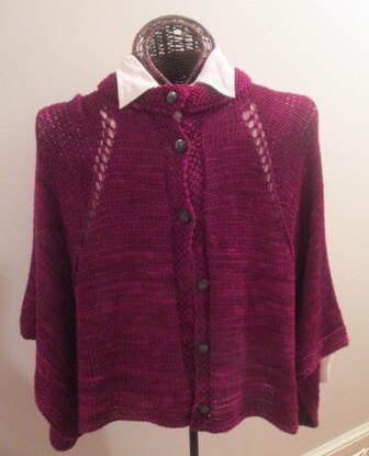 This lovely cape is designed with a lovely rolled stand-up collar, buttoned front, faux inverted pleat, and a short-row edge to provide lovely lower-edge shaping. Every right-side row is increased by 8 stitches, as shown in bold until the lower short-row edge is reached. Despite the variety of design features, this is a very easy pattern to knit, resulting in an elegant hand-made bit of outerwear. Enjoy knitting this cape!