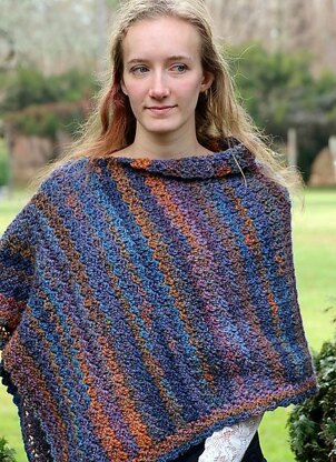 Chelsea Wrap is simply a long rectangle folded in half and seamed at the shoulder. So simple, so easy, yet so elegant. The Crazy Shell stitch is used and there are many possible variations.