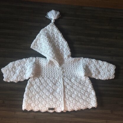 CHERRY BABY HOODIE CROCHET PATTERN PDF - A beautiful lacey baby hoodie | baby jacket in size 3 - 6 Months, made all in one from armhole up then armhole down so no sewing of side seams.