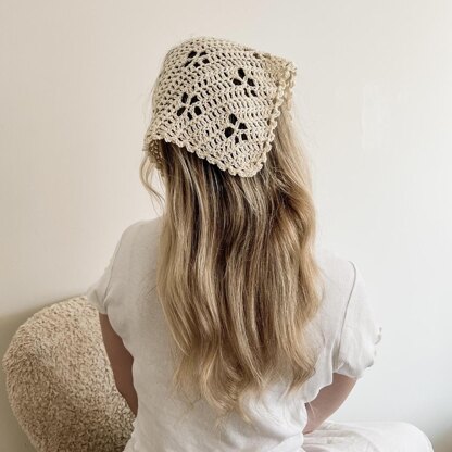 Yarns: The white bandana: Yarn and Colors Must-Have in color cream (002). The yellow bandana: Drops Safran in color vanilla cream (10). For both sizes, you’ll need only 1 ball of this yarn (50 g / 1.76 oz).