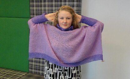 You can wear the cardigan with the collar around your neck, so that it becomes a type of sleeved poncho. You can draw shut the collar and wear the cardigan over your back, which will make the sleeves appear shorter. When you wear the cardigan over your back, you also have the option to use the top back as a hood. However you are wearing the cardigan, you can leave it open or close it with the button.