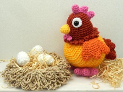 Cheryl takes her responsibilities very seriously, whether it be tidying her nest, looking after her latest batch of eggs or scratting around for some tasty corn to eat. She may be the busiest chicken in the coop but she still finds plenty of time to gossip with the other hens. Detailed written instructions and complimentary photos are included to help you along the way to making some occupants for your own busy hen house! Cheryl the Chicken measures approx. 7" (18 cm) tall. Pattern requires light worsted weight (DK/8 ply) yarn and a 3 mm hook. Suggested safety eye - 10 mm black plastic. This pattern is written in American crochet terminology and includes a handy stitch conversion chart so you can translate to British crochet terms instead should you wish to.