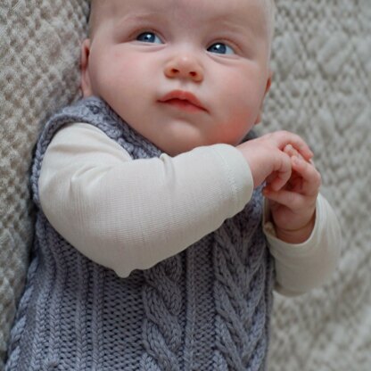 This deliciously preppy, unisex vest will dress up any outfit while keeping little tummies toasty. The cable texture is very stretchy, which makes for a comfortable and durable garment. The cable pattern itself is intuitive and easy to memorize, and it’s much easier than it looks!