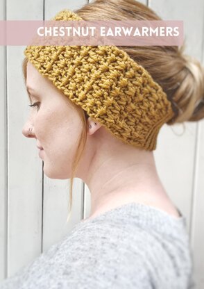 The Chestnut Ear Warmers are designed to be a simple, yet interesting design which can be made quickly using less than 1 ball of yarn. They feature a stretchy section at the back to ensure a good, comfortable fit, and can be made in 3 sizes: child (suitable from 6 years), small adult and adult. They can also be easily adjusted to make wider/larger. Using a chunky yarn with a small hook gives them a cosy feel and lovely textured stitch definition.