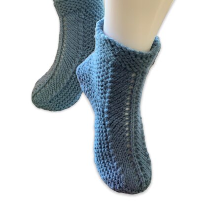 I thought I'd jazz these slippers up a bit by adding some details to the top of the toe with a striped eyelet/chevron combo. I also made the cuff a little longer to fit even more like a bootie. I like how the final product turned out and is very gender neutral.