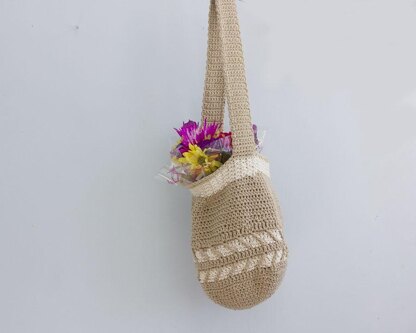 The bags is perfect for a day at the Farmer's Market or just a trip to the grocery store. Though compact, it will naturally stretch to fit lots of groceries or vegies. A strong, pretty bag, it can also be used as a tote, book bag or beach bag.