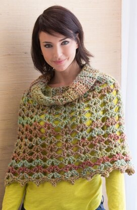 Chic Cowl Neck Poncho in Red Heart Medley - LW4638