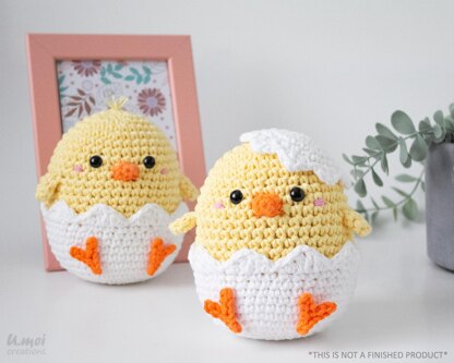 MATERIALS • Medium (4) weight cotton yarn: yellow (80 m), white (50 m), orange (10 m), pink (50 cm) • Crochet hook size: 3.75mm (F/5) • Black safety eyes: 9mm • Polyester fiberfill • Yarn needle • Scissors • Sewing pins [optional] • Stitch marker [optional] • Yarn stiffener or Mod Podge [optional]