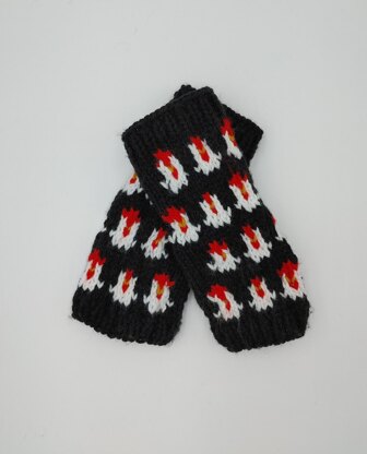 These fingerless gloves are a quick knit. Knitted flat then seamed together.