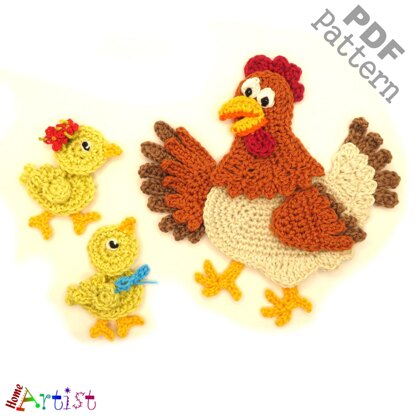 The pattern provides instructions to make a cute crochet applique that can be used in inumerable ways...decorate and personalize your favorite objects like hats, t-shirts, bags, school knap-sacks and lots of other stuff you can think of. Mom: 6 inches across by 6 inches tall Chicks: 2 ½ inches across by 3 inches tall using 2.5mm crochet hook but the size can be varied by using thinner or thicker yarn and types of hook. Colors can be changed according to your personal preference. The pattern is designed for worsted weight yarn and uses American English crochet terms. This crochet pattern is available for Instant Download. Once your payment is received, you will get an email with the download link and details of your order. In case of problems feel free to contact me anytime.