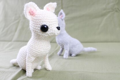 This pattern contains full diagrams (charts, ) written pattern (in US terminology ) and photo instructions. In download page, 2 PDF files are always available ( English and Japanese. ) Pattern has been tested in English and Japanese. Difficulty: ★★★★☆ (Advanced) This pattern requires basic (traditional ) crochet skills You use following advanced skills for seamless (no-sew ) crochet: working in chains with back or front loops only / skip stitches for working later to make seamless parts Materials and Tools You can make this dog with any weight of yarn. I used: MC (Main color / white): Daruma iroiro (1) 14g CC (Contrasting color / pink): Daruma iroiro (41) 3g Stuffing 12mm eyes 8mm dog nose Tools 2.2mm hook Yarn needle Finished Sizing 12 x 7 x 11.5 cm Photo tutorials In this pattern, I used multiple colors to make the process clear.