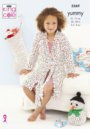 Childrens dressing gown, Snowman & Stocking in King Cole Yummy in King Cole - 5569 - Leaflet