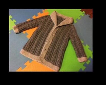 This sweater is worked from the bottom up. Sleeves are made separately and added to the body. All is worked together with raglan decreases. Button band and collar are added later. Buttons are needed for the front closure. There is a matching Father's Cable Cardigan pattern as well.