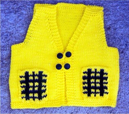 Something a bit different in a childrens vest. We like this style for boys. And little girls seem to like it too! It knits up so fast; you will be able to make a whole wardrobe of colors. You can knit the pockets plain color, or use our easy graph! Or leave pockets off, and knit up vests in many bright colors! Vest fits from 2-4 yrs, up to 10- 12 yrs. Uses worsted weight yarns, knitting needles US # 9. You will also need 4 buttons for unique closure!