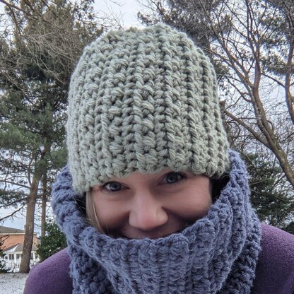 I think most crocheters like to have a quick project in their library that works up simply. This hat was made to have ready for markets, family sets, and last minute gifting. 7 sizes are written into the pattern as well as instructions to change the fit for a slouchy style. There is a matching headband available as well in my shops. The sample is made with Lion Brand Hue + Me. Two good substitutes are Michael's Loops and Threads Charisma yarn or Red Heart Soft Essentials. Use an L (8mm) hook make this very cozy hat!