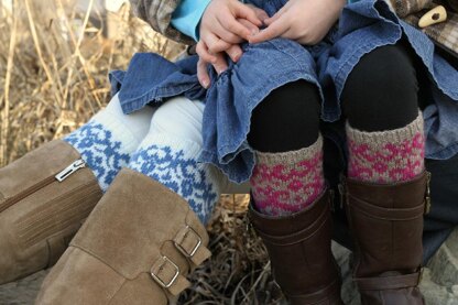 Pretty patterns inspired by vintage plates wrap about these cuffs. The sizes cover everyone from toddlers to plus sized adults. Choose any two colors of Palette (or a similar fingering weight yarn), the largest size only requires two balls. if you are making a smaller than 20 inch adult size, you will have enough left over to make a child size from the two balls.