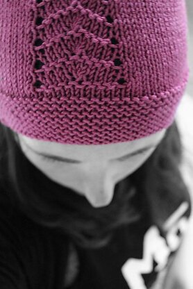 The knit features a subtle textured section that runs from the crown down to the hem using a simple lace pattern that is easy and enjoyable to knit.