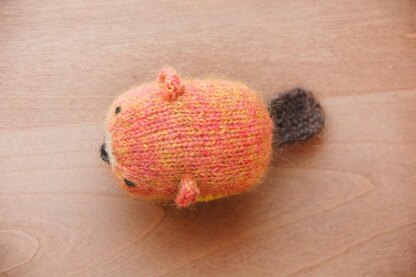 This is a pattern for a knitted beaver. It is worked mainly in stockinette and in the round. With the ears and tail worked flat. The legs are picked up from waste yarn and worked similarly to glove fingers for a few rounds. Eyes and nose are embroidered with straight sts.