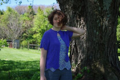 Yarn: Avalon Springs Farm Chivalry [100% silk noil; 475 yards per 4 oz skein]; 2[2, 2, 2, 3, 3] skeins. Sample knit in Dover Sky.