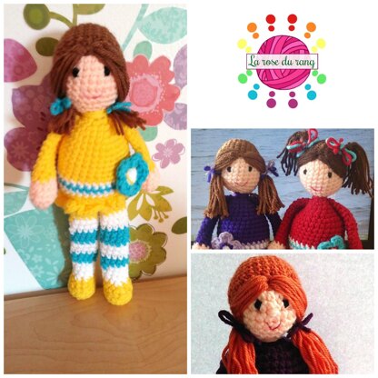 Ce patron inclue les instructions pour la poupée de base avec motif de ceinture et fleur décorative avec jupette à froufrou ainsi que des instructions pour réaliser des lulus.