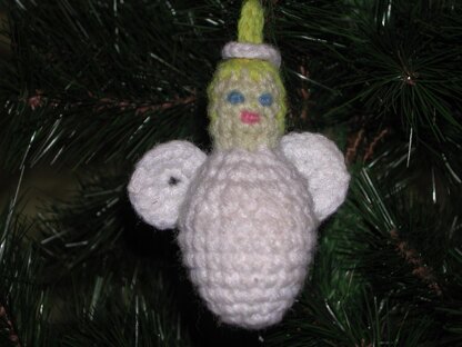 This adorable little angel ornament will look great on your Christmas tree. It is made with scraps of worsted weight yarn and a small amount of dacron stuffing. I designed a whole series of these, because I adopted a cat who loved to climb the Christmas tree. Obviously, they are pet- and kid-proof and washable, too.