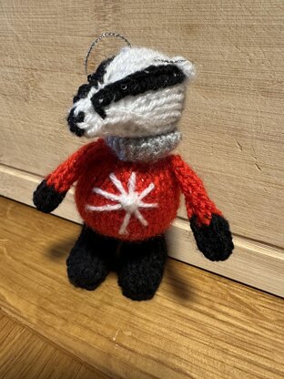 This is a pattern for a little badger dressed as a Christmas bauble. He can hide a Ferrero Rocher or Lindor chocolate inside his bauble, or can be stuffed and used as a hanging decoration.