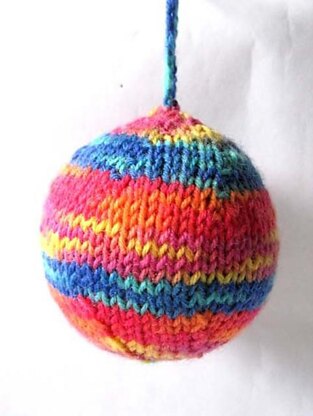 The pattern includes instructions for knitting a large bauble in either a DK yarn or sock yarns to cover a ball approx the size of a foam tennis ball or a small bauble knitted in sock or fingering weight yarn to cover a ping pong (table tennis) ball.