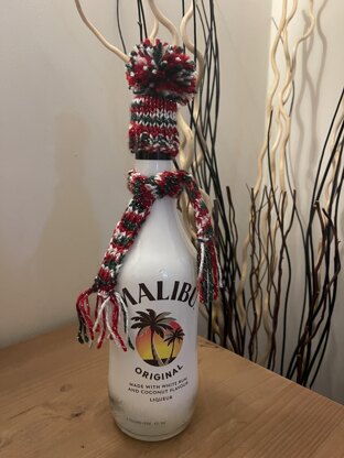 PDF Knitting pattern instant download to create an easy Christmas Bottle Topper Set.