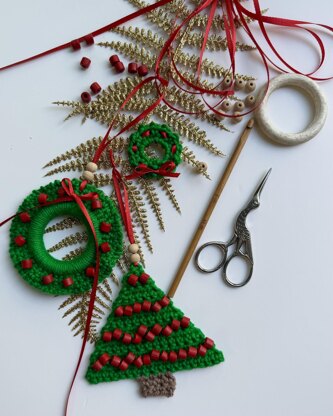 | One size only: | Tree 10.5cm Large Wreath 8.5cm diameter Small Wreath 4cm diameter |