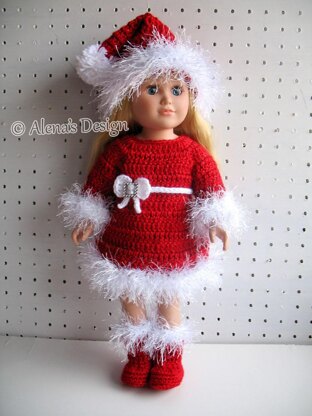 This pattern set is to make a Christmas Dress, Santa Hat, and Boots for American Girl or similar 18 inch doll. Also, not just for Christmas. It would look lovely in other colors for the rest of the year.