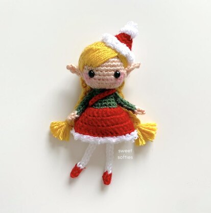 The Christmas Elf Pixie is an adorable, sprite that loves the holiday season! This jolly girl wears a festive red and green outfit, complete with a Santa hat. She is a quick and easy amigurumi doll project that can also be easily customized by using different yarn colors, making different hair styles, and adding embellishments such as beads, buttons, and appliques. This elf is part of Sweet Softies’ Pocket Pixies Series. Like those other mini toys, this amigurumi is a great children gift for kids who love to play with small figures. Make her as a birthday or winter present today!