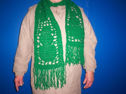 Snowmen are not just for Christmas. This cute snowman scarf will make up quickly with worsted weight yarn and a large hook, so you can makes lots for gifts, or one to match each of your coats. The design reverses at the center back, so your snowman is the same on each end of the scarf. The pattern is written for both adult and child sizes. Boys and girls will both love it. The instructions are completely written out, so there is no counting of blocks and holes.