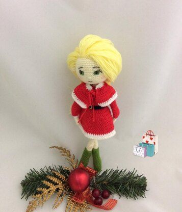 This is a christmas girl crochet amigurumi pattern - pdf file .