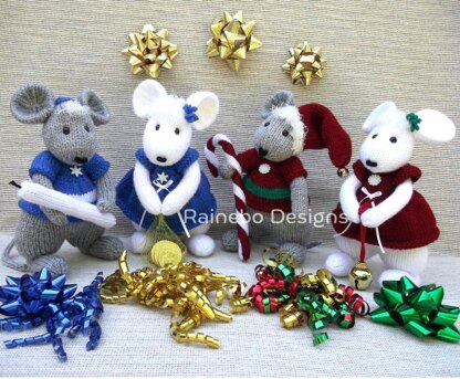 These holiday mice are knit flat/seamed with regular #4 worsted wt. (Aran, 10-ply) yarn. The Christmas Mice hold a candy cane and jingle bell. The Hanukkah Mice hold a menorah candle and a bag of gelt. They would make a lovely holiday decoration in your home.