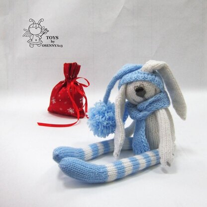 Materials needed • 4 double-pointed needles in a size suitable for the yarn weight you are using. I recommend using needles a size or two smaller than the yarn calls for, to produce a firm fabric. İ used Needles size 2 (3mm) • White yarn for a hare • Blue yarn for a cap, a scarf and stockings • A little gray yarn for an embroidery of a mouth, claws, eyebrows • Toy stuffing • Plastic eyes • Yarn needle • Stitch holder • Gray felt for a nose