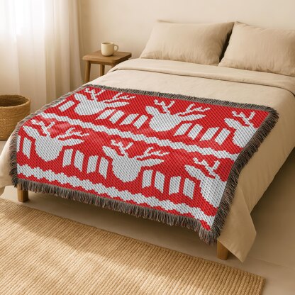 Christmas Ornament crochet blanket, designed using the Corner-to-Corner crochet technique, features red & white X-Mas reindeer with snowflakes ornament—perfect for cozying up on snowy evenings.