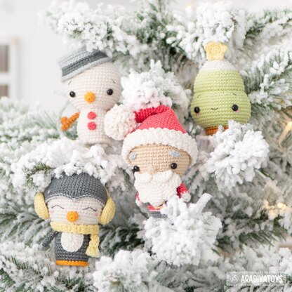 Christmas Ornaments Crochet Pattern Mini Amigurumi Set Santa Penguin Snowman Christmas Tree Xmas Decorations by AradiyaToys