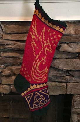The Phoenix graces the upper part of the stocking with a representation of the Triquetra Celtic knot on the foot. The Triquetra Celtic knot represents the balance of Mind, Body and Spirit. It also represents death and rebirth, just as the Phoenix does.